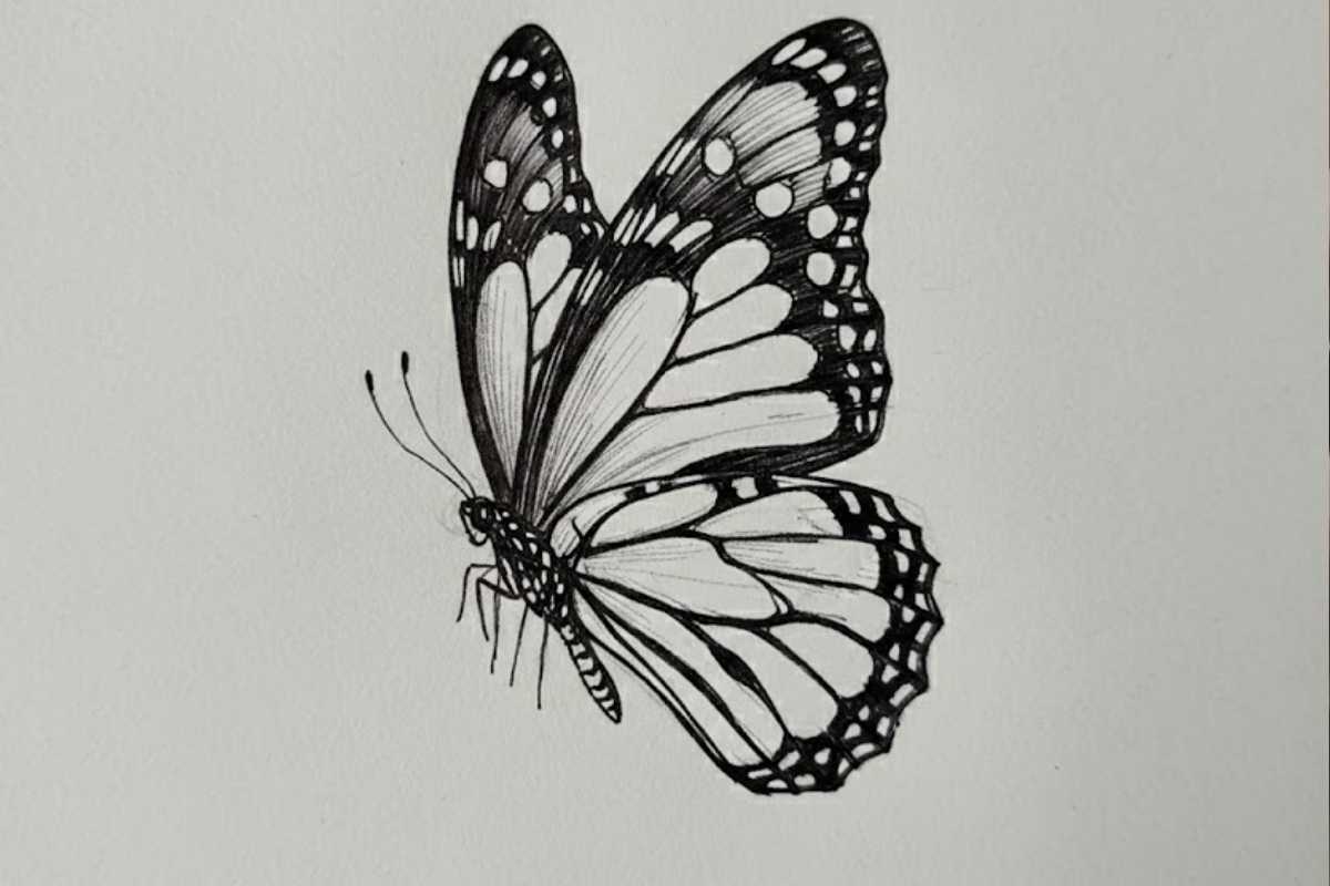 You’ll see how to check left–right symmetry without tracing, and how to place the body first so the wings “hang” naturally from the thorax. Perfect if you want a simple butterfly drawing that still looks lively.