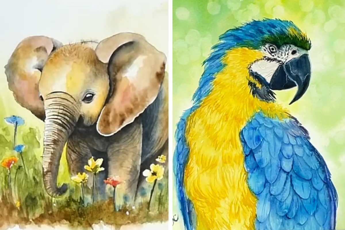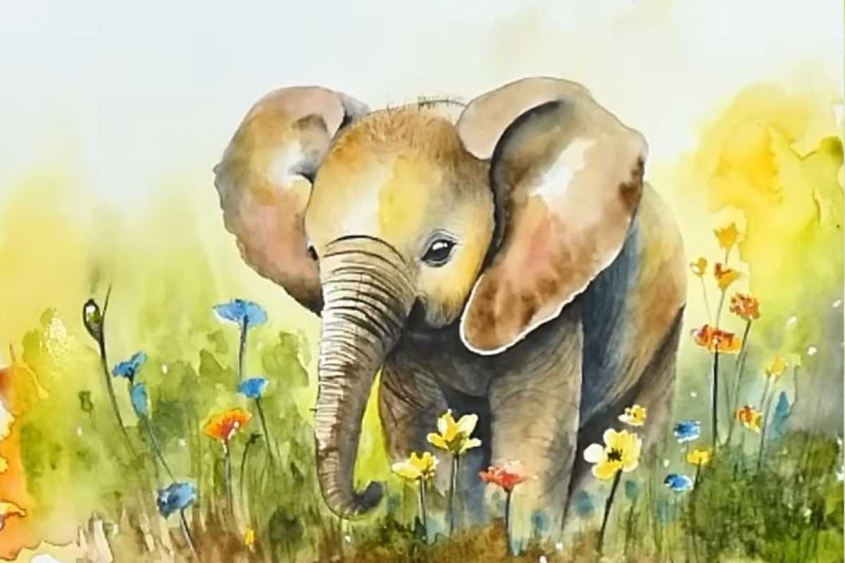 Limit detail to the eye, ear edge, and trunk tip. The rest can stay soft—your viewers will fill in the story. It’s an ideal study if you’re exploring narrative, character-rich watercolor art paintings.