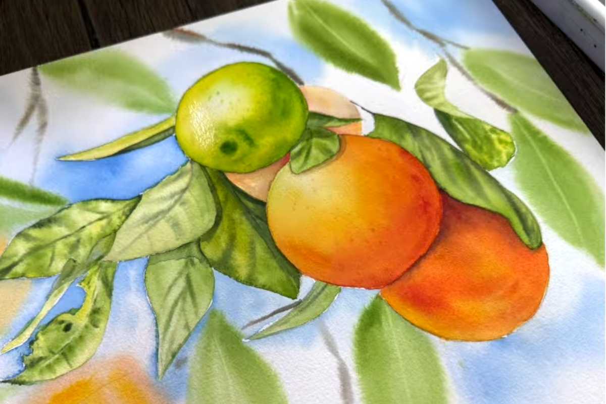 Use glazing for saturation, lift a few juicey sparkles, and add cast shadows to ground the fruit. Food studies like this are classic art watercolor exercises with instant “wow.”
