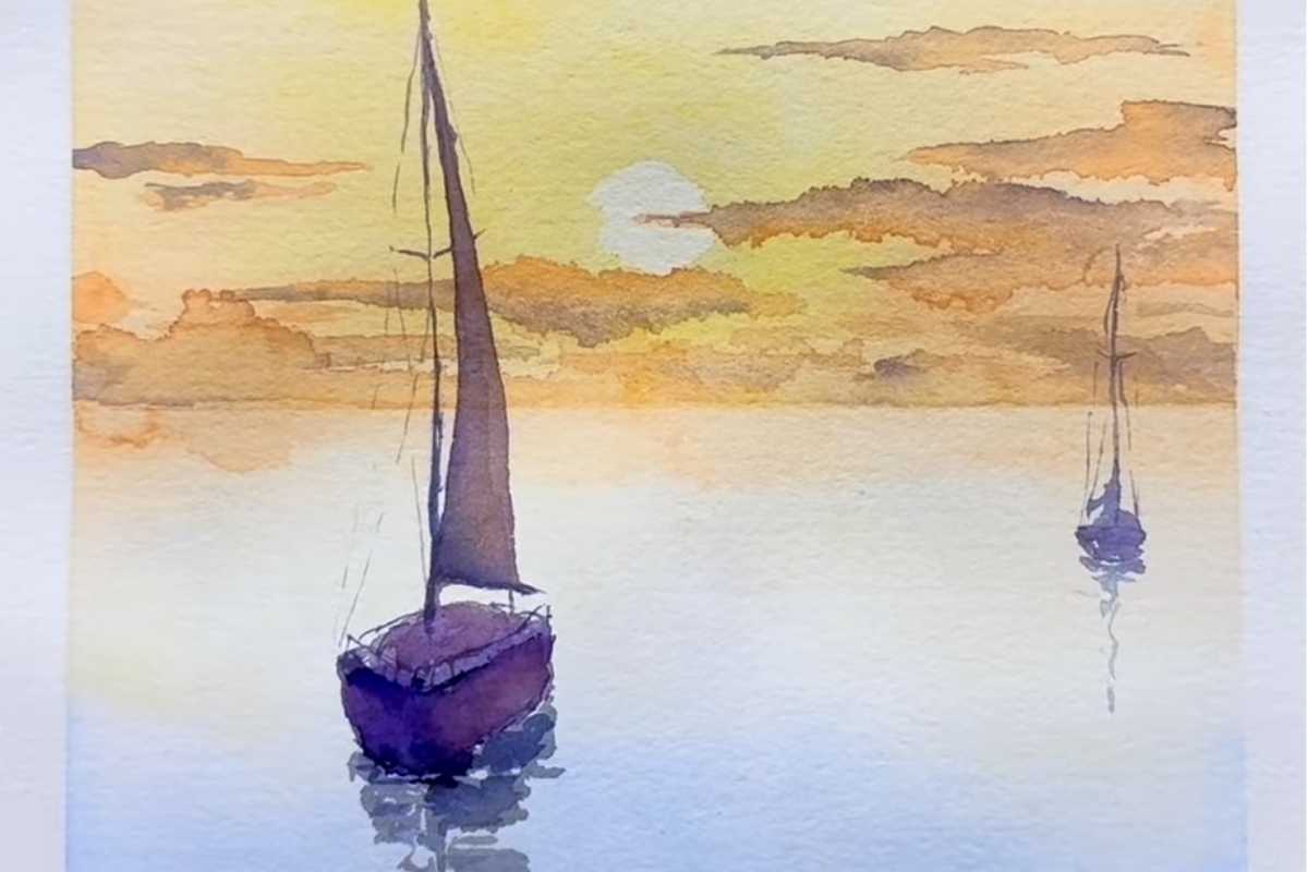 Let the sea mirror colors in broader, horizontal strokes. This is classic art ideas watercolor territory—simple shapes, high payoff.