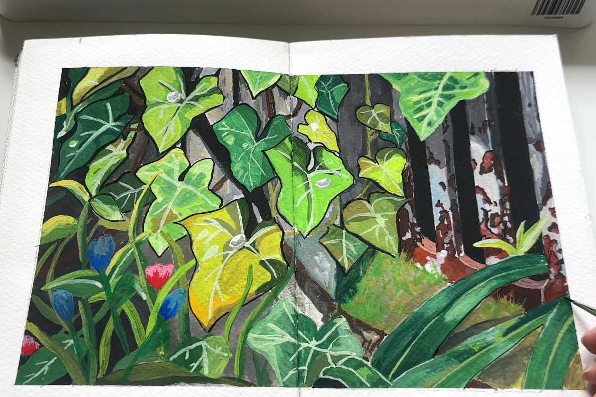 Design tree masses first, then add branch rhythms and selective leaf calligraphy. Learn sunlit planes vs. bounce-lit shade, a must for convincing ghibli gouache painting. Repeat with seasonal palettes to build a swatch library you’ll reuse in scenes.