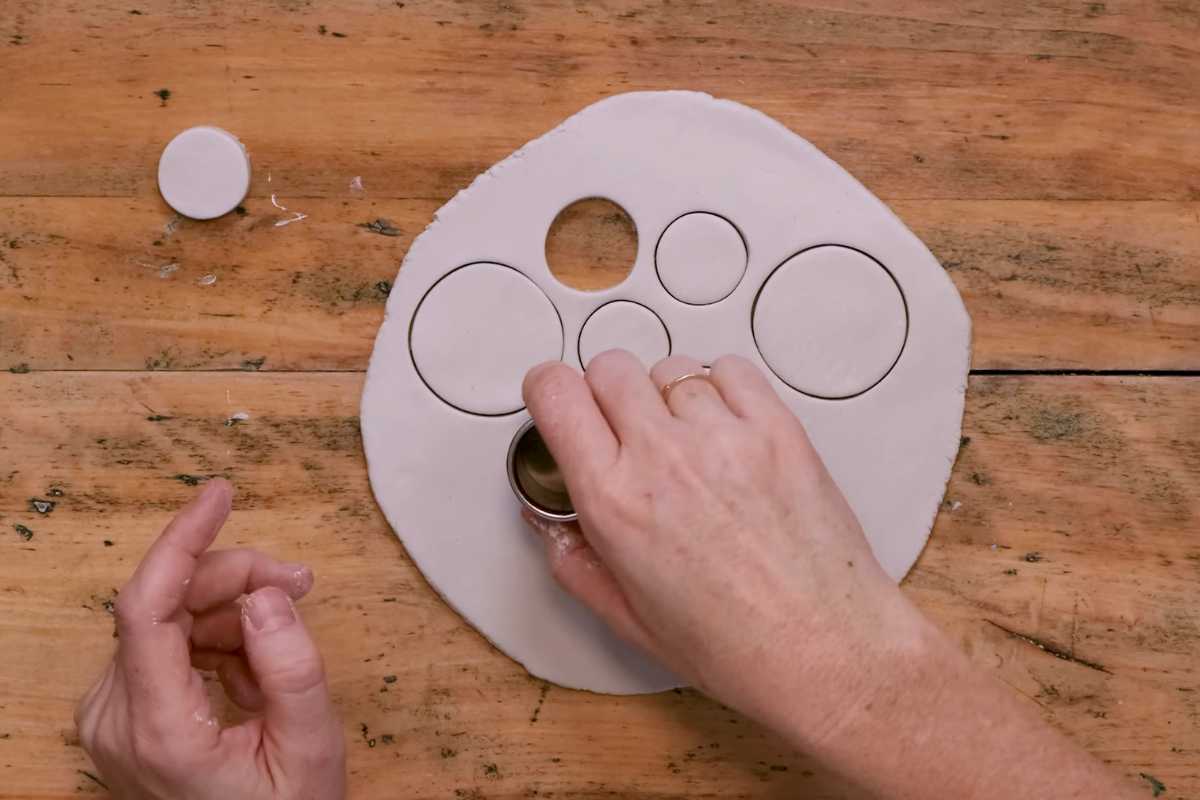 Cut & smooth: Roll to an even thickness (about 3–4 mm), cut circles, then bevel and burnish the edges with a damp fingertip. Clean edges make budget materials look premium.