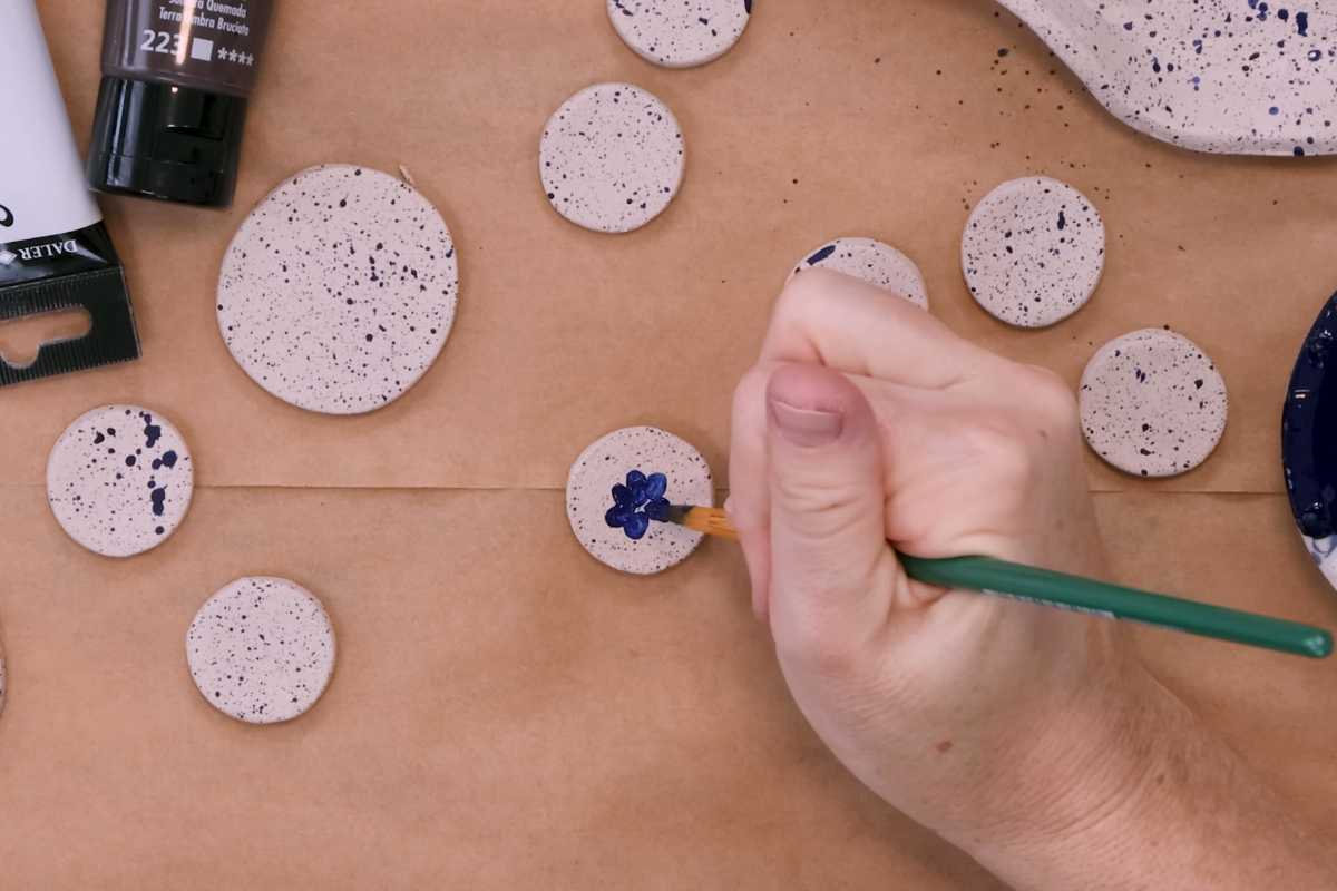 Because the shapes are simple circles, you can focus on finishes: speckled undercoats, floral brushwork, and a matte seal that reads artisan rather than DIY.