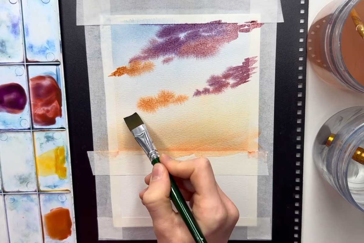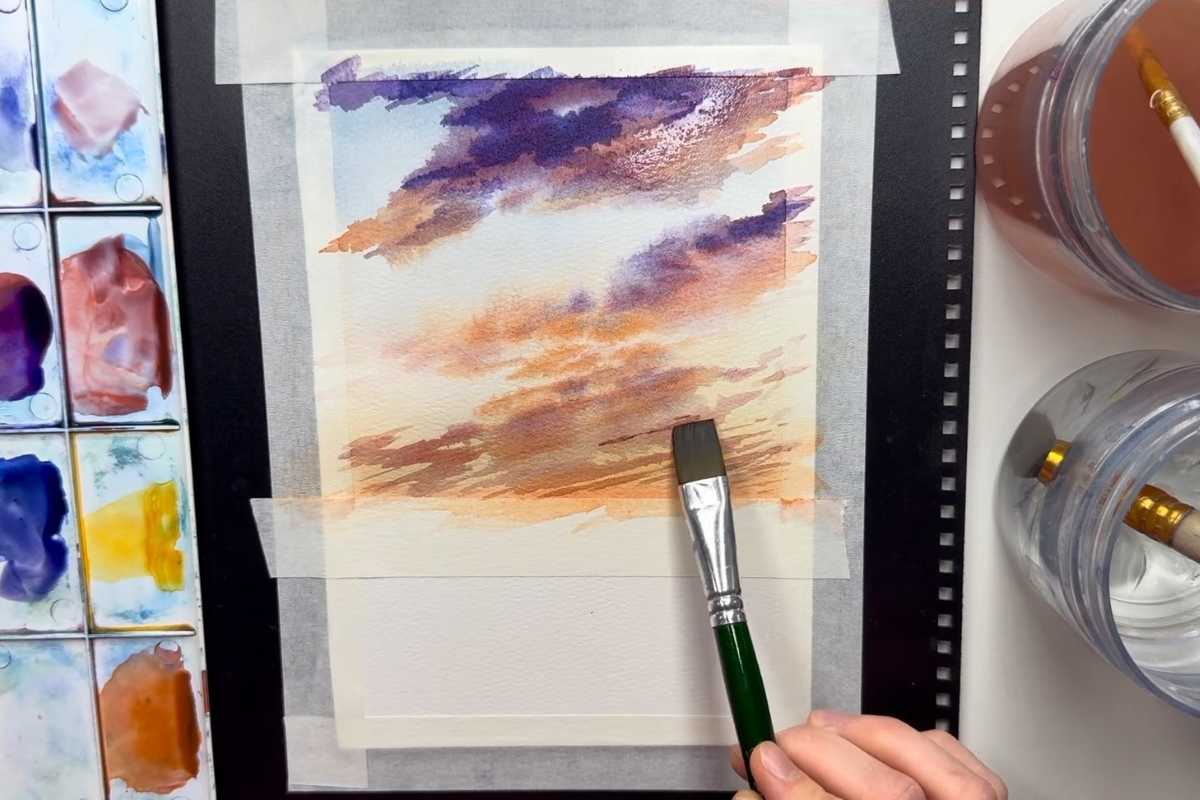 If you have a flat brush, it’s handy for broad washes and horizon lines. Aim for 100% cotton watercolor paper when possible; it buys you extra blending time and resists pilling—huge advantages when you’re still learning water control.