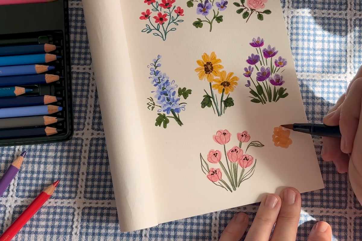 Mini flowers offer a chance to focus on small-scale creativity. Unlike large botanical illustrations that require technical precision, these flowers are all about looseness and personality.