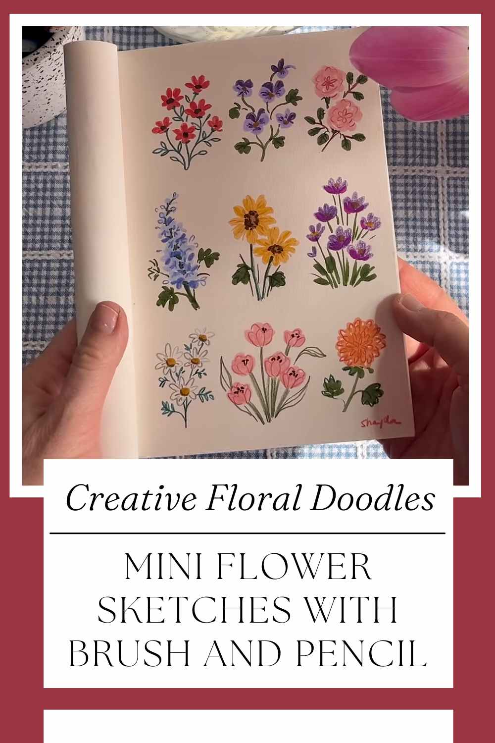 Creative Floral Doodles: Mini Flower Sketches with Brush and Pencil