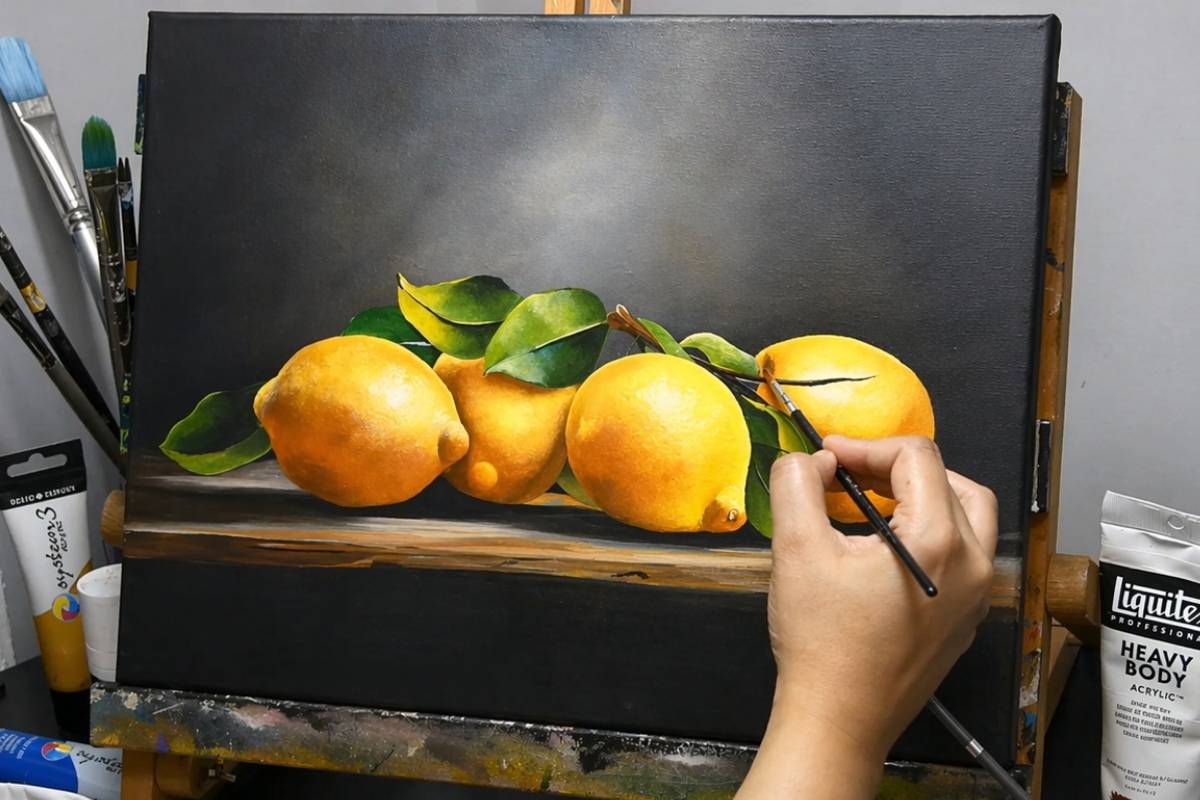 Realistic Acrylic Painting: Sunlit Lemons Study