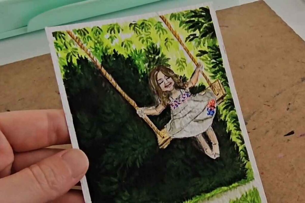 Painting a girl on a swing using gouache can be a delightful project that allows you to practice a variety of techniques, from creating soft gradients to building up layers of color.