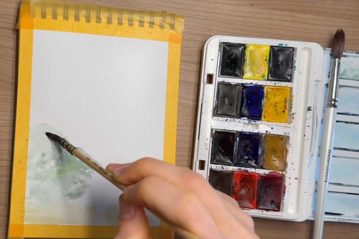 You only need student-grade paints, two brushes (a round and a liner), watercolor paper, and clean water. Tape the edges, tilt the board slightly, and test mixes on a scrap so your washes stay luminous.