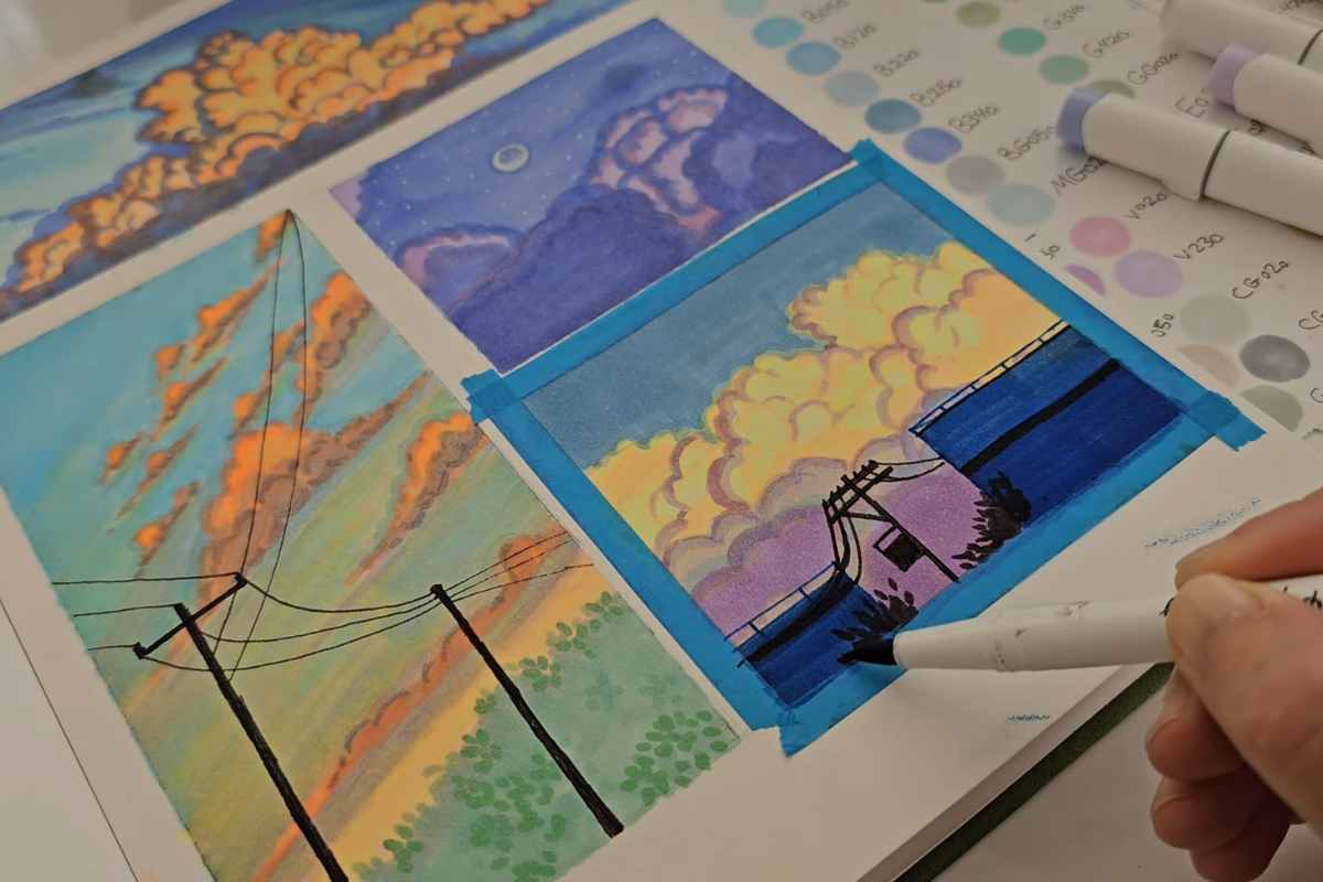 Master Cloud Drawing: 4 Easy Alcohol Marker Sky Scenes