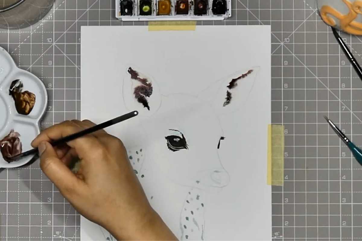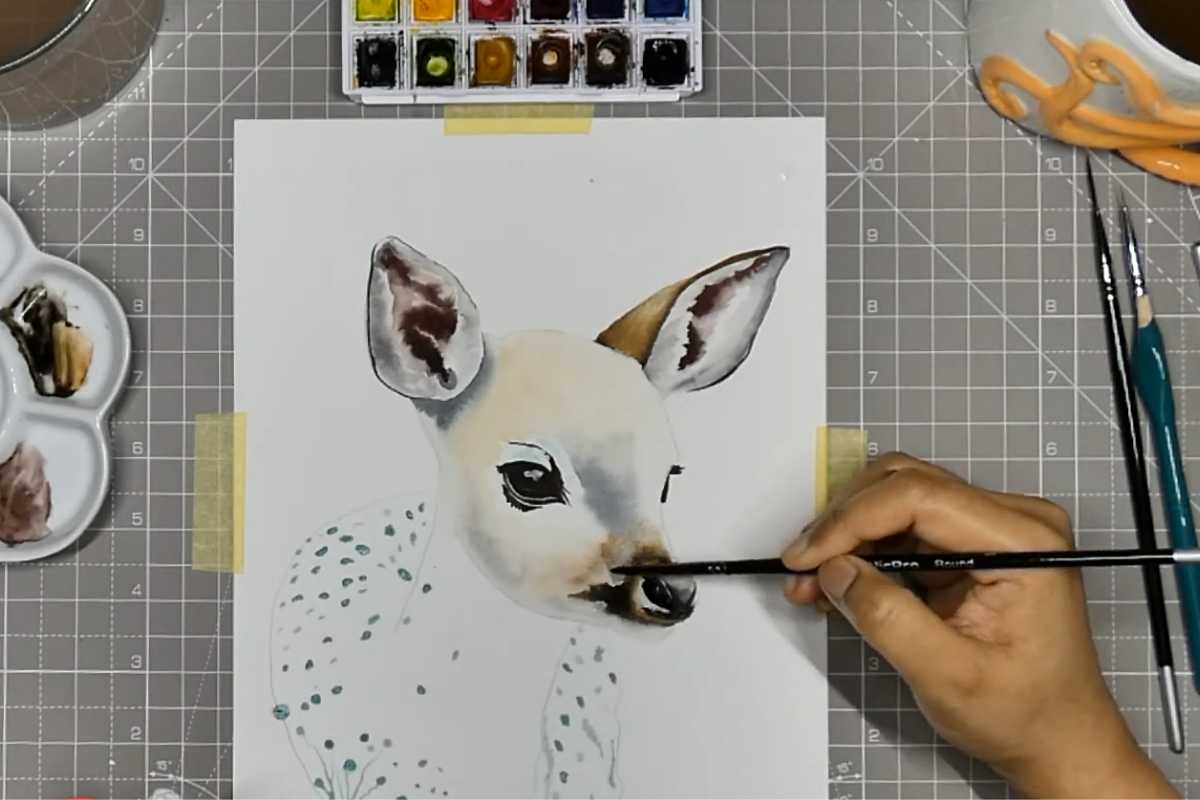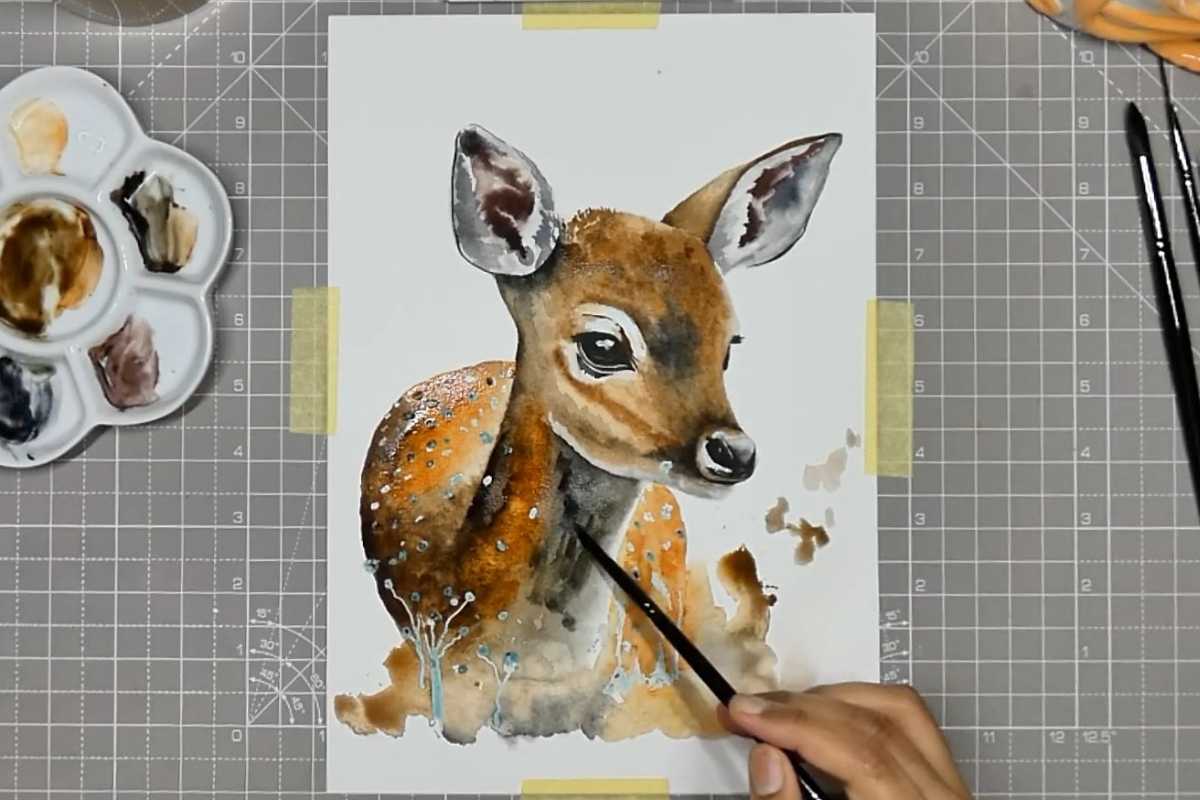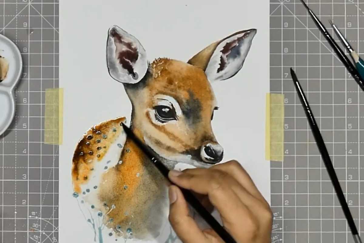 A fawn’s features—soft transitions, natural textures, and delicate light—play perfectly to watercolor’s strengths.