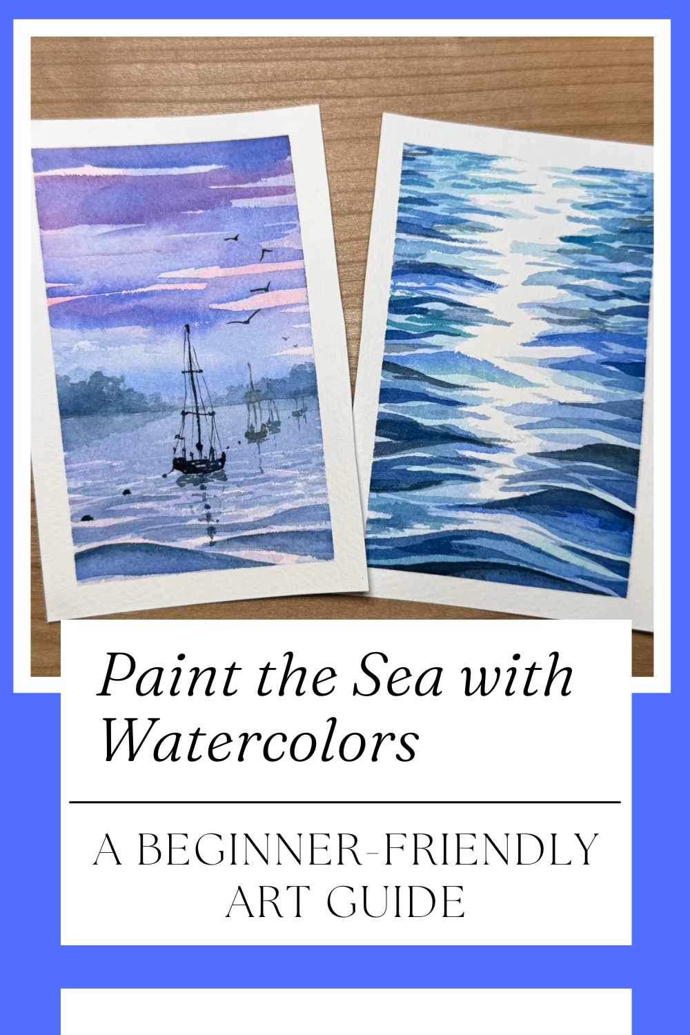 This beginner-friendly video tutorial guides you through two beautiful watercolor paintings of the sea:
