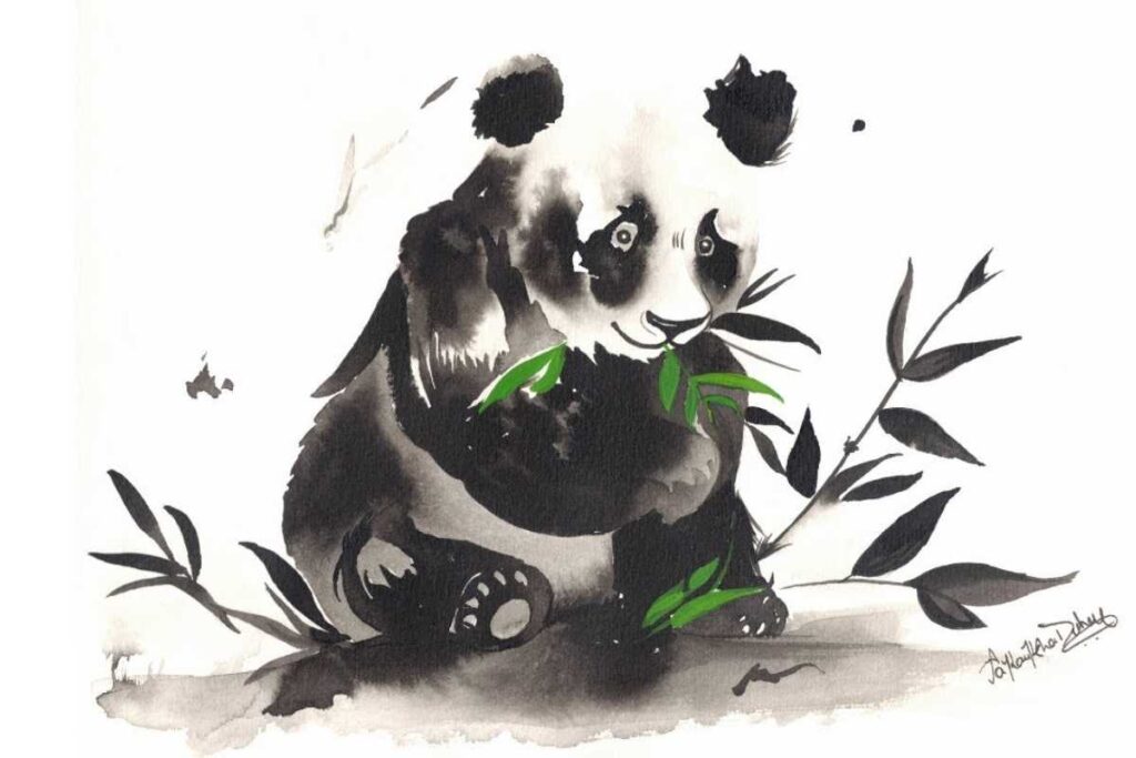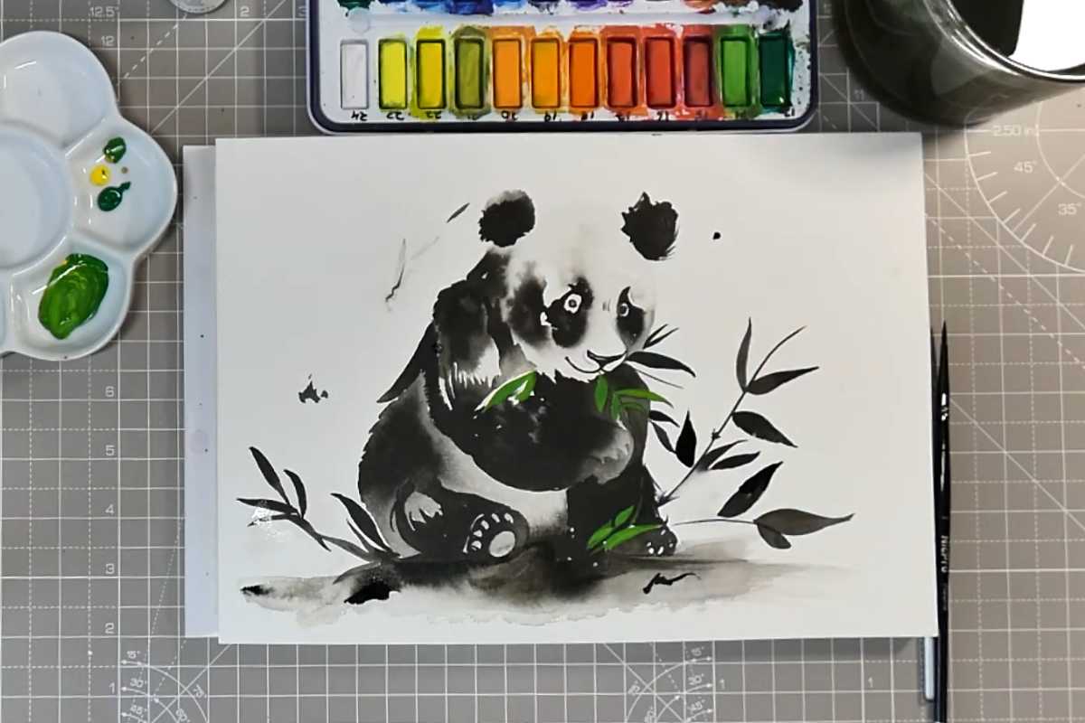 If you’re new to animals, think of this as Panda Painting Easy: a few decisive shapes, a handful of accents, and a tiny dose of color. The result reads instantly as a panda ink painting while staying fresh and modern.